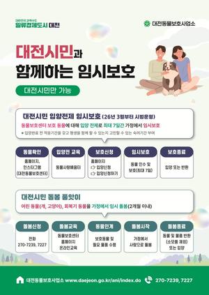 ´ëÀüµ¿¹°º¸È£»ç¾÷¼Ò´Â º¸È£µ¿¹°ÀÇ º¹Áö ÁõÁø°ú ÀÔ¾ç·ü Çâ»óÀ» À§ÇØ¡®µ¿¹°º¸È£¼¾ÅÍ Àӽú¸È£ È®´ë ¿î¿µ°èȹ¡¯À» ¸¶·ÃÇϰí 3¿ùºÎÅÍ ½ÃÇàÇÑ´Ù. ...