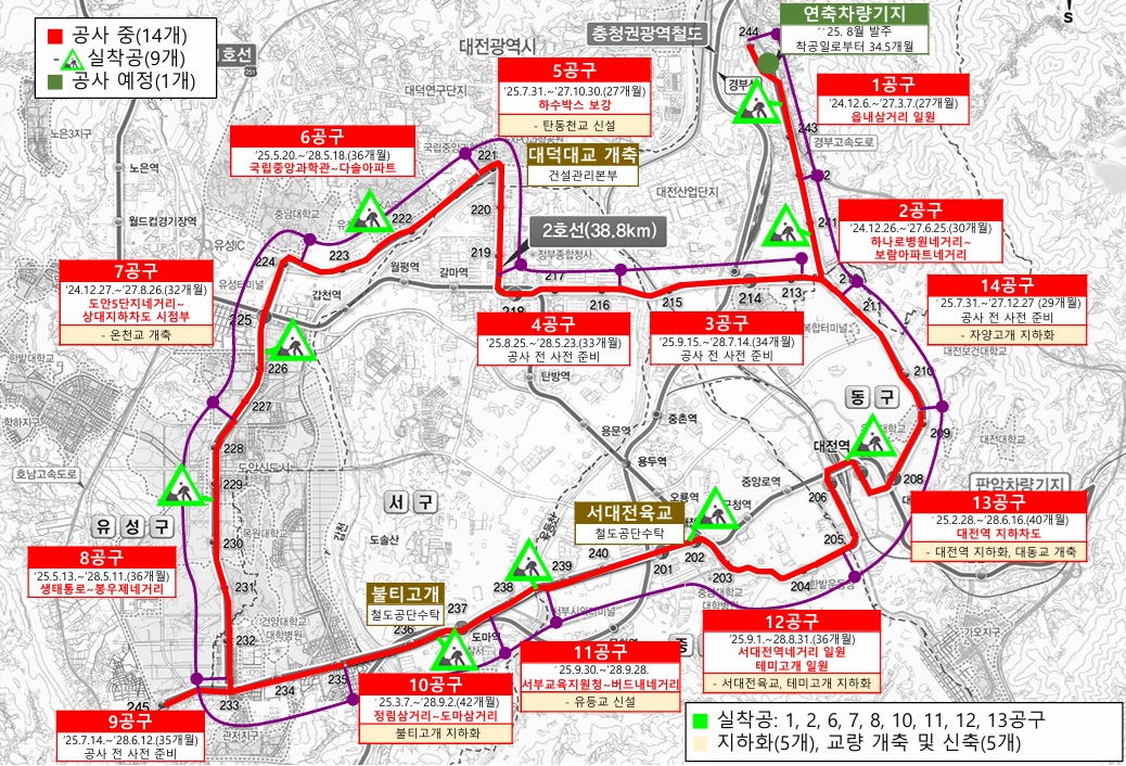 ´ëÀü½Ã´Â 3¿ùºÎÅÍ µµ½Ãöµµ 2È£¼± ÀÜ¿© 5°³ °ø±¸ÀÇ º»°ø»ç¸¦ ½ÃÀÛÀ¸·Î, º»¼± 14°³ Àü ±¸°£¿¡¼ ³ë¸éÀüÂ÷(Æ®·¥) °Ç¼³°ø»ç¸¦ º»°Ý ÃßÁøÇÑ´Ù.