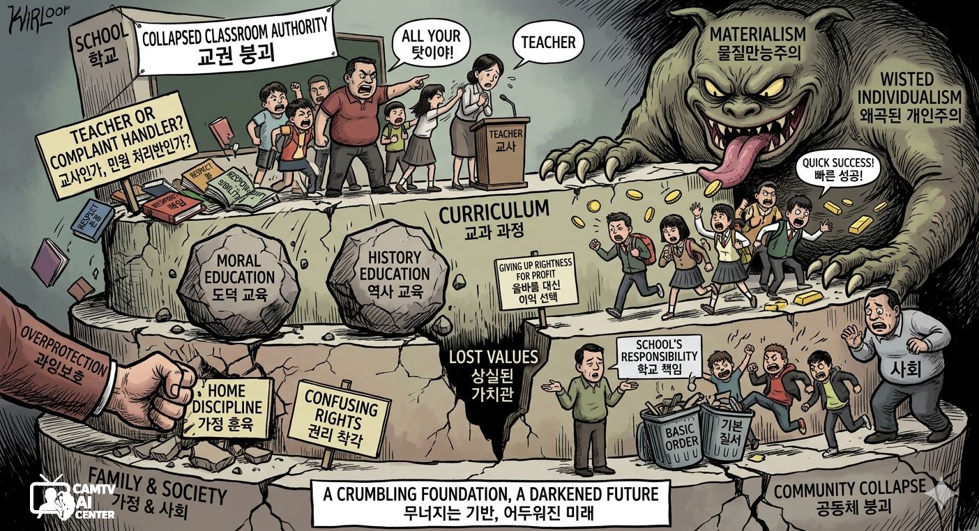 ¹«¾ùº¸´Ù ½É°¢ÇÑ °ÍÀº ±³±ÇÀÇ ºØ±«ÀÔ´Ï´Ù. ±³»ç°¡ °¡¸£Ä¡´Â ÁÖü°¡ ¾Æ´Ï¶ó ¹Î¿øÀ» µÎ·Á¿öÇÏ´Â Á¸Àç·Î Àü¶ôÇÑ ¼ø°£, ±³À°Àº ÀÌ¹Ì Èçµé¸®±â ½ÃÀÛÇß½À´Ï´Ù. ±³À°Àº ±ÇÀ§ÁÖÀǰ¡ ¾Æ´Ï¶ó Á¸Áß°ú Ã¥ÀÓ À§¿¡¼ ÀÛµ¿ÇØ¾ß ÇÕ´Ï´Ù. ±×·¯³ª Áö±ÝÀº ±³»çÀÇ ±ÇÀ§´Â »ç¶óÁö°í Ã¥ÀÓ¸¸ ³²Àº ±âÇüÀû ±¸Á¶°¡ µÇ¾î¹ö·È½À´Ï´Ù. ÀÌ »óȲ¿¡¼ Á¦´ë·Î µÈ ±³À°À» ±â´ëÇÏ´Â °ÍÀº ¹«¸®ÀÔ´Ï´Ù.